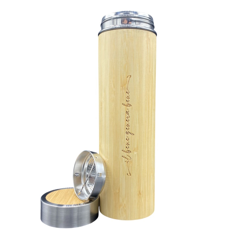 Borraccia termica in fibra di bambù con infusore integrato - la scelta sostenibile per chi ama tè, tisane e infusi.