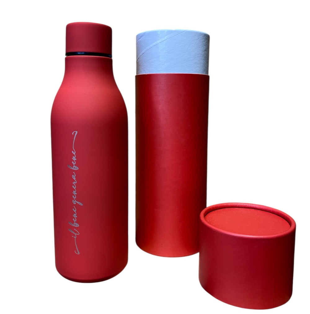Borraccia termica in acciaio inox con elegante finitura soft touch e incisione laser "IL BENE GENERA BENE".