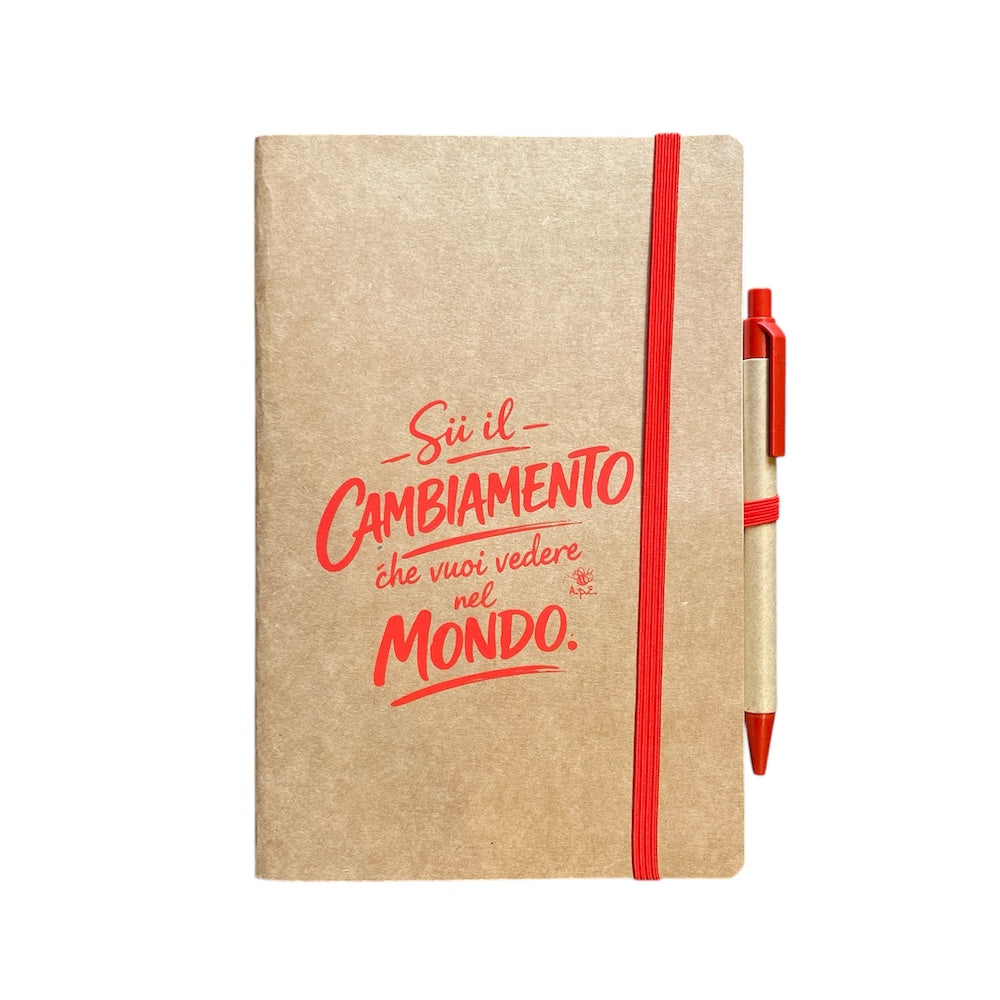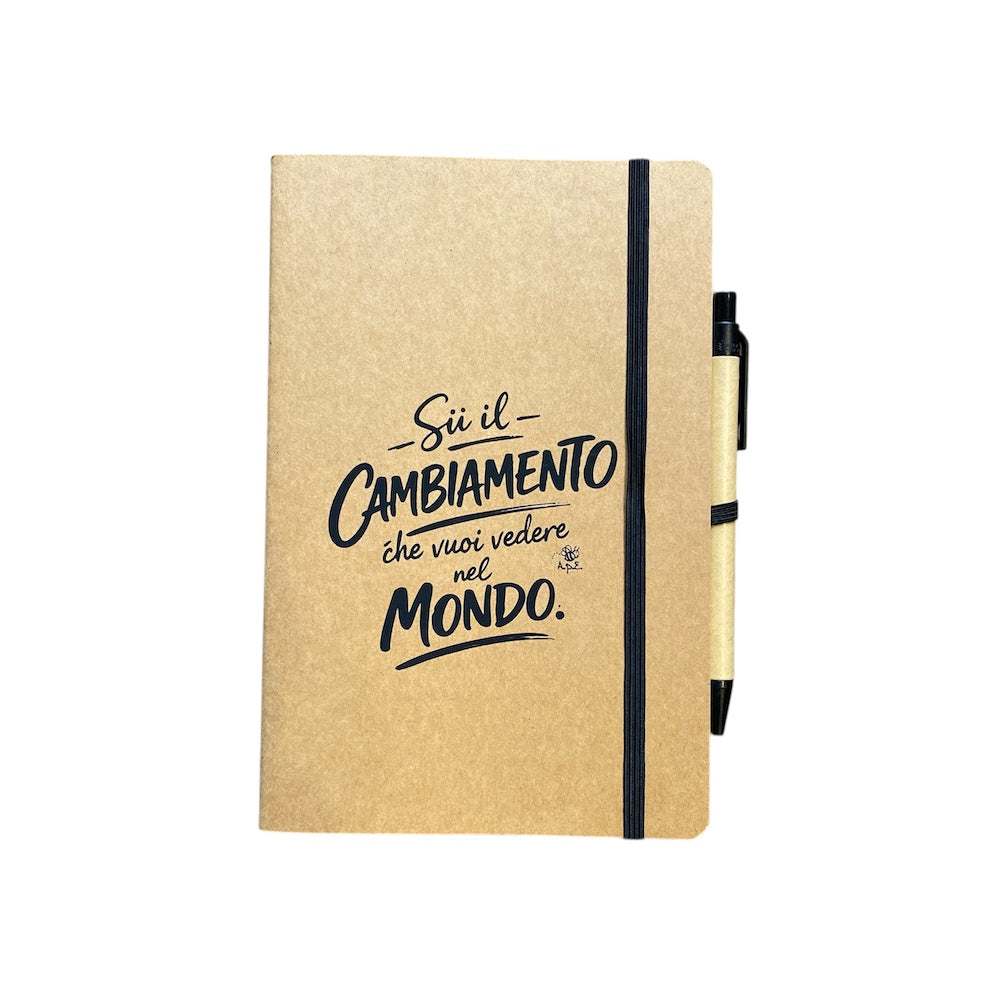Set Taccuino e Penna "SII IL CAMBIAMENTO CHE VUOI VEDERE NEL MONDO " in Cartone Riciclato